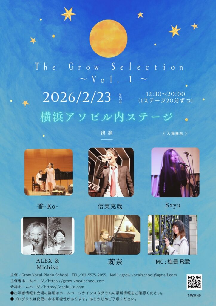 この度は数ある音楽教室の中からグロウボーカル・ピアノスクールのHPをご覧いただき誠にありがとうございます。